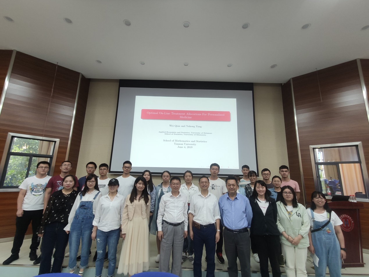 2019年6月4日下午,应公司李建平教授邀请,美国明尼苏达大学杨宇红教授到公司讲学,在威廉体育williamhill3103报告厅作了题为《Optimalon-line treatment allocations for personalized medicine》的学术报告。本次学术报告由公司经理唐年胜教授主持,副经理李建平教授、丁红林博士及博士硕士研究生参加了报告会。