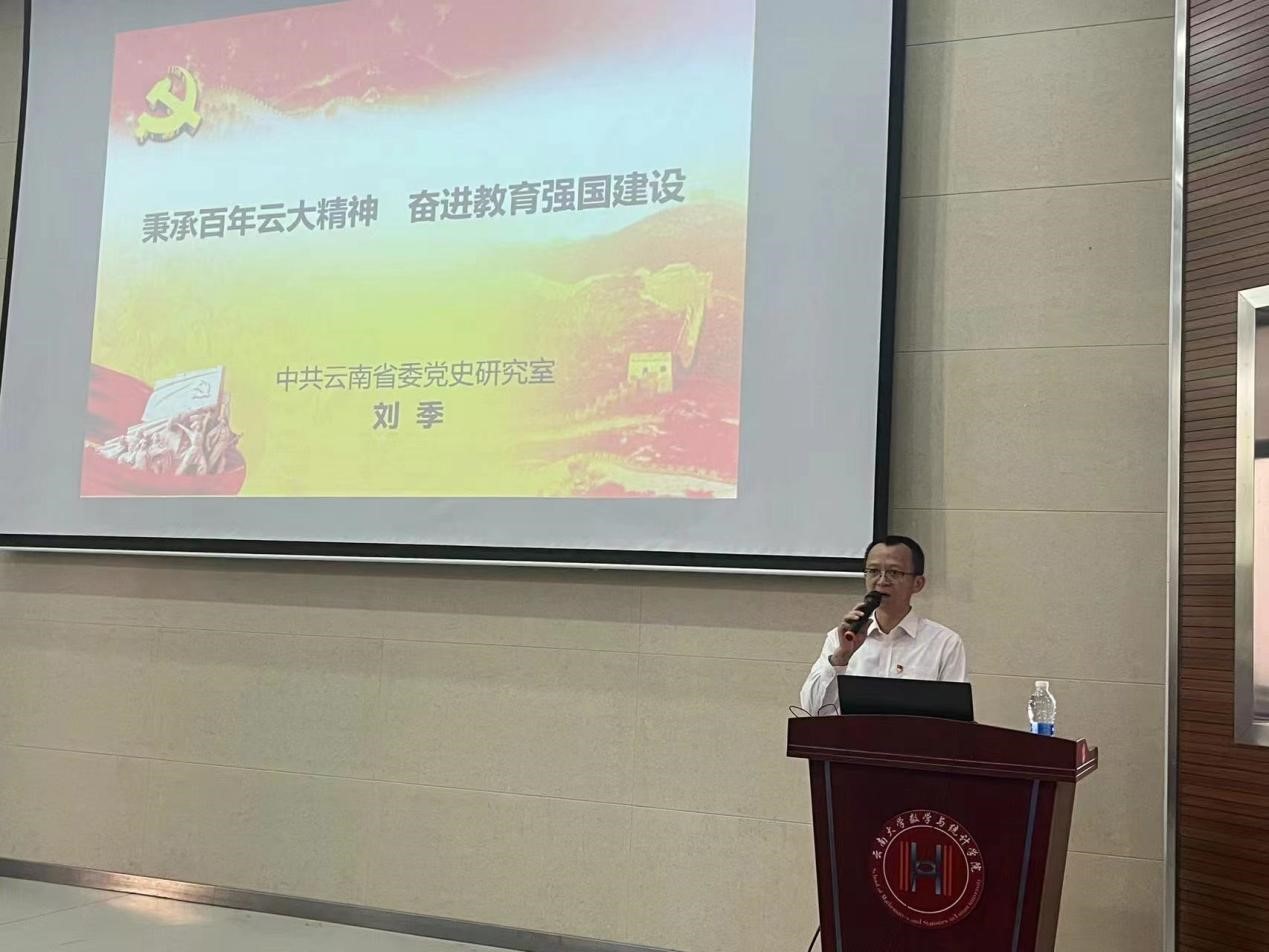 2023年10月20日,威廉体育williamhill邀请到中共云南省委党史研究室刘季处长,在格物楼3103报告厅开展2023年威廉体育williamhill分党校“万名党员进党校” “秉承百年云大精神,奋进教育强国建设”党员培训。公司党委书记徐瑾主持本次培训。