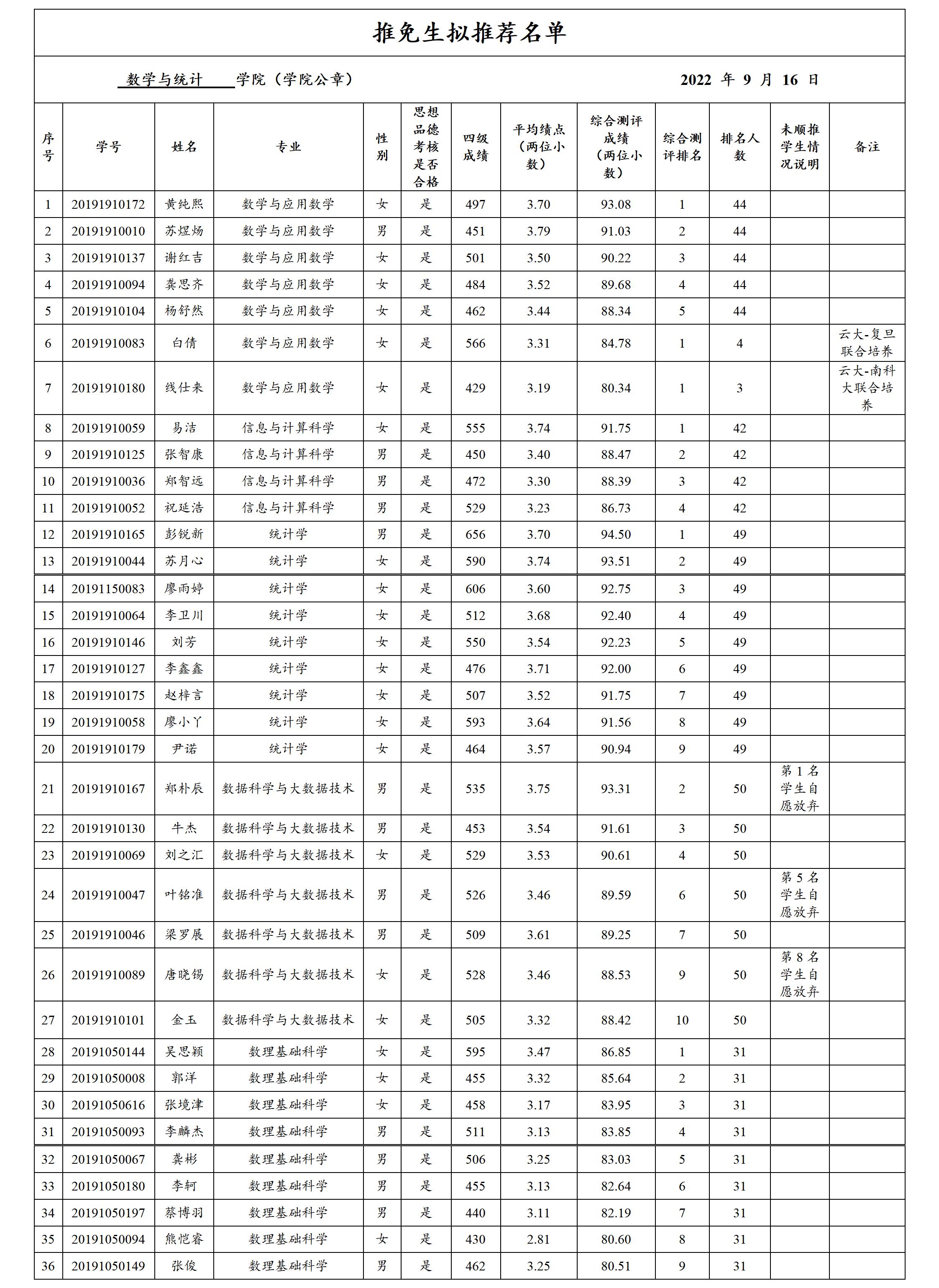 根据教育部相关文件精神,公司按照《威廉体育williamhill2023年推荐优秀应届本科毕业生免试攻读研究生工作管理办法》要求,在员工本人申请、民主推荐、公开评选的基础上,公司推免生遴选工作小组本着公开、公平、公正的原则,严格按推荐条件择优确定初选名单,现将公司2023年免试攻读研究生拟推荐名单公示如下。如有异议,请于9月22日前到公司办公室反映,联系电话:0871-65031199 。