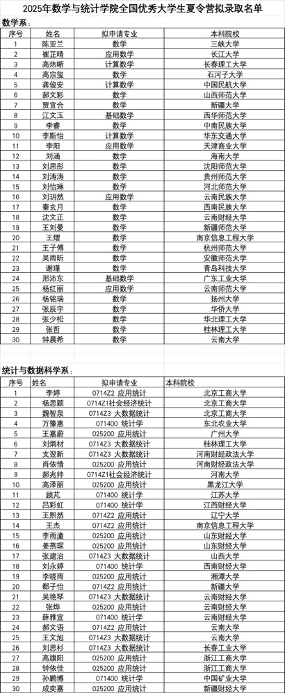 2025年威廉体育williamhill全国优秀老员工夏令营拟录取名单