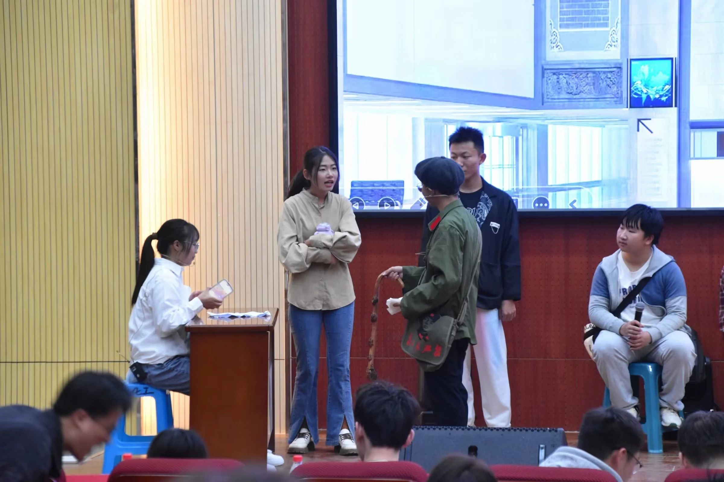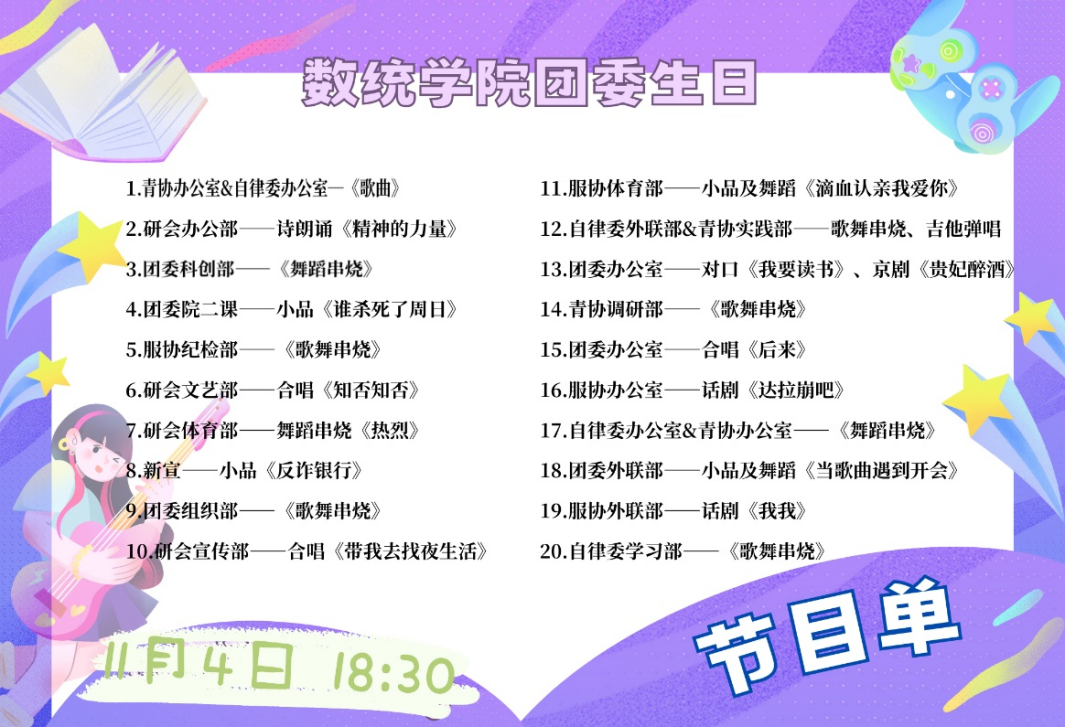 由团委院二课、新闻宣传中心、服协体育部,服协办公室团委外联部、服协外联部带来的话剧小品表演,有反应社会现实,有与神话的结合,或是在三次元的舞台上带来破次元的表演等等,一个个剧目的呈现,背后是所有人的共同付出,也让大家感受到数字以外,独属数统的幽默与温情。