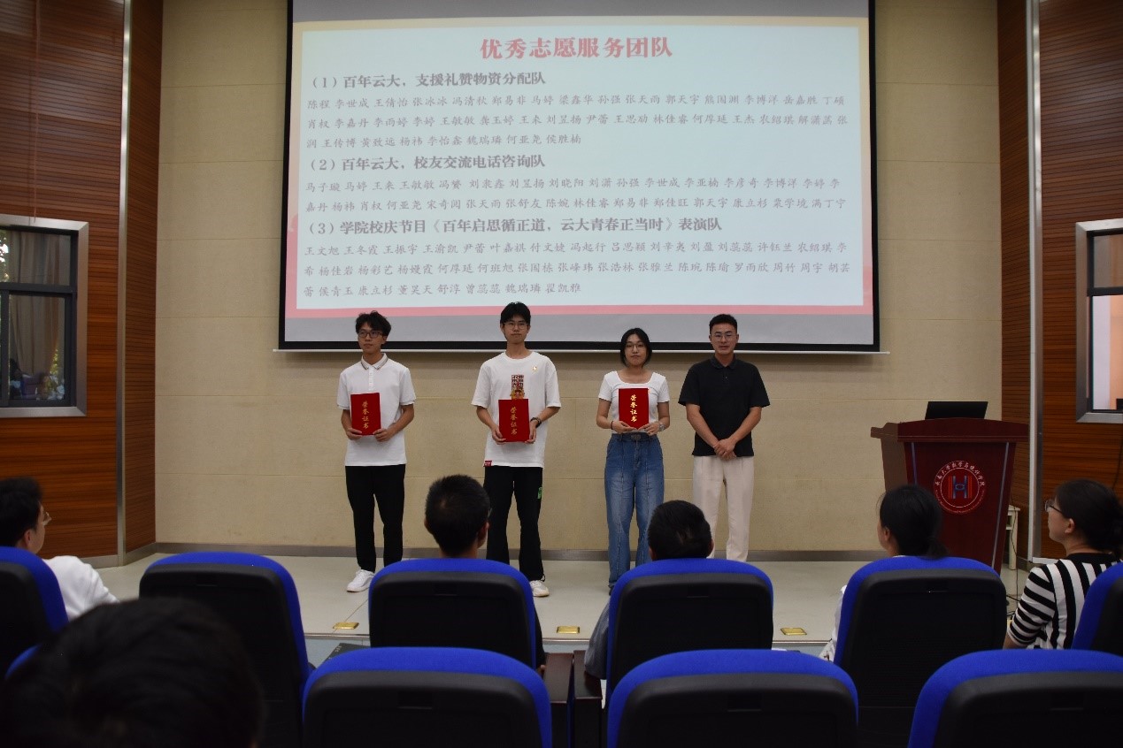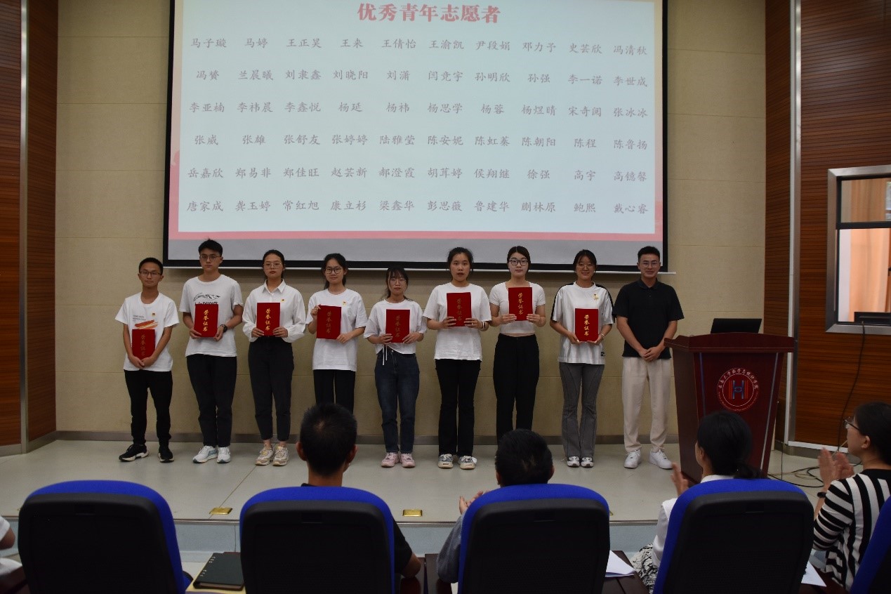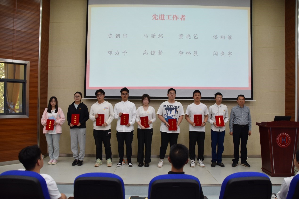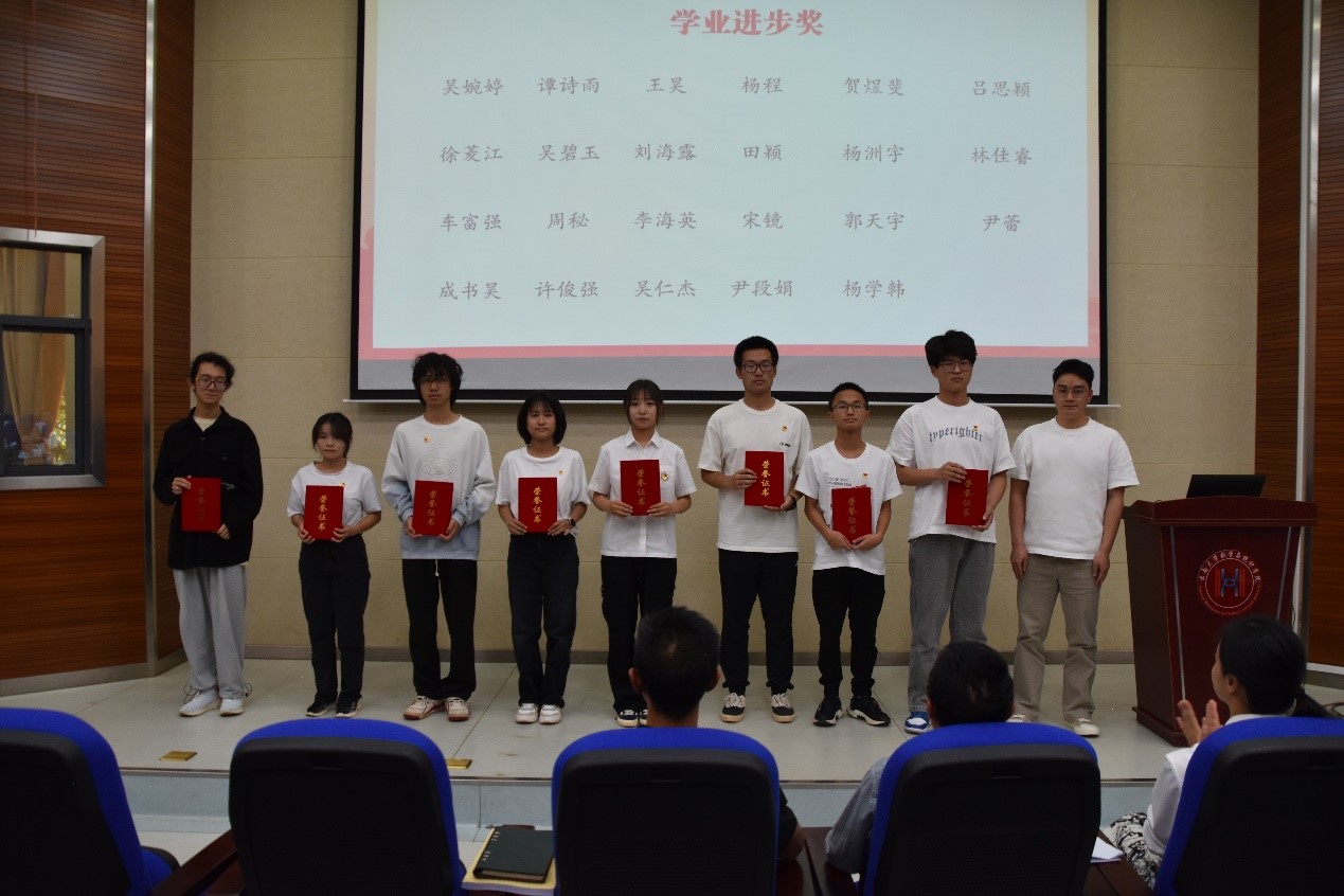 第五项议程:颁奖环节。为表彰先进,宣传先进,激励全院青年、团员、团干部和组织奋发有为、再创佳绩,公司团委决定授予2022级应用统计研究生第二团支部等4 个团支部“红旗团支部”称号,授予陈朝阳等8位同学“先进工作者”称号,授予王正昊等74位同学“优秀共青团干部”称号,授予李京京等114位同学“优秀共青团员”称号,授予吴婉婷等22位同学“学业进步奖”称号,授予苏宇杰等75位同学“优秀毕业生”称号,授予马子璇等60位同学“优秀青年志愿者”称号,授予3个志愿团队“优秀志愿服务团队”称号。各获奖代表依次上台领奖。