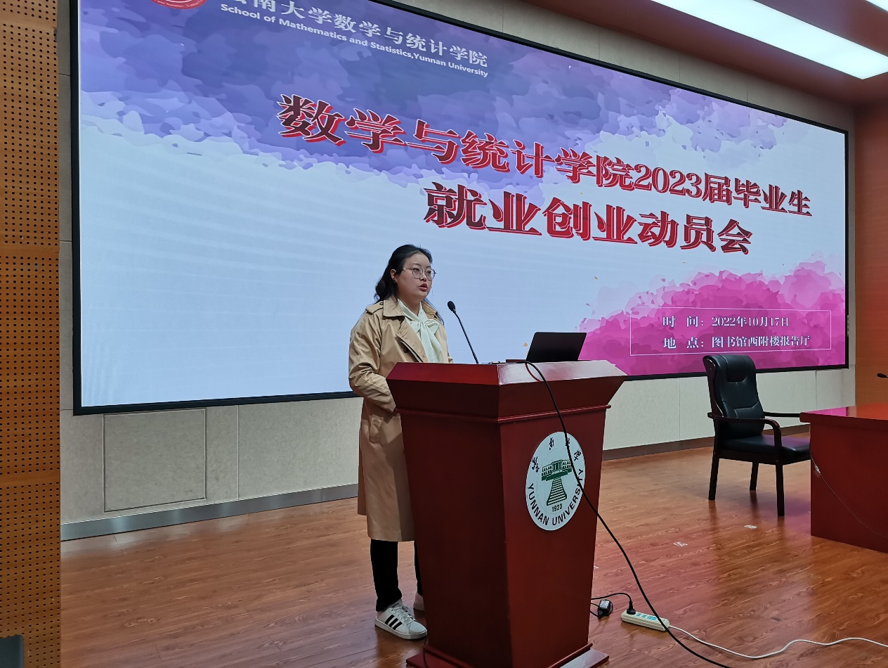 高校毕业生就业工作是教育领域重要的民生工程。为落实习近平总书记关于加强老员工就业的指示精神和国务院关于稳就业的系列通知要求,切实推进公司毕业生升学、就业与创业工作,2022年10月18日13:00,威廉体育williamhill于图书馆西附楼一楼报告厅举行了数统公司2023届毕业生就业动员会暨征兵动员会。会议由公司王蔓琦老师主持,公司党委副书记杜芳芳老师出席,全体2023届本科毕业生、研究生毕业生积极参与,认真倾听。