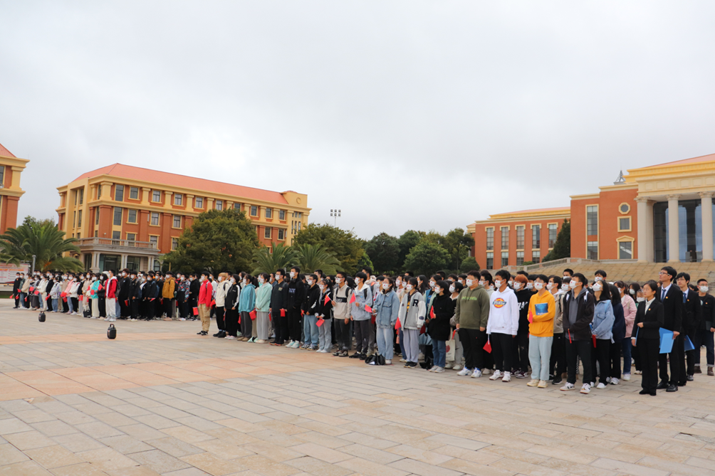 早上七点公司大一、大二、大三年级本科生准时到达文典广场,早上七点半升旗仪式正式开始。伴随着国旗护卫队铿锵有力的步伐,现场庄严而肃静。所有人的目光聚集在那面五星红旗上,眼里满是希望的光辉与对先辈的敬佩。