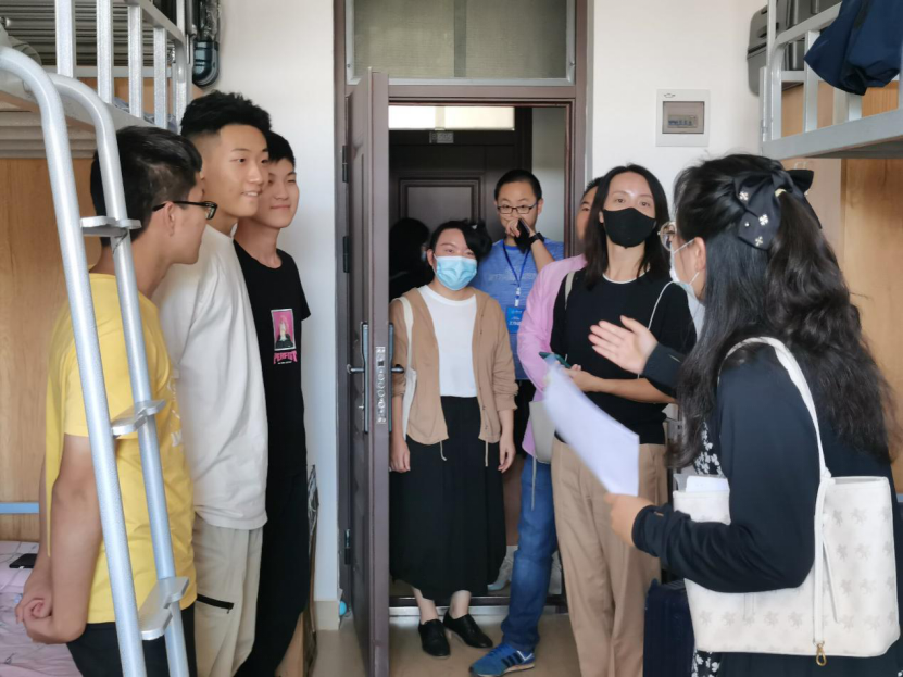 下午3点,威廉体育williamhill副经理潘东东,党委副书记杜芳芳,2021级本科生辅导员王蔓琦,以及2021级班主任余彬、唐琳、王磊、李素华前往员工宿舍看望新生,并对新生进行亲切关怀。在与同学们的交谈中,老师们不断鼓励同学们尽快适应宿舍新环境,学好专业知识。