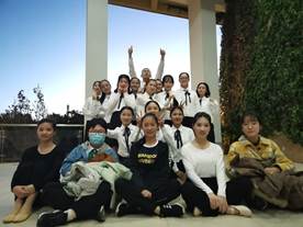 比赛开始前,还能看到我们数统向风队的成员们在场外抓紧时间进行排练和细节提醒,但经过两周艰苦训练的队员们已然没有太多的问题。大家都紧张又期待着登台表演。