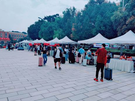 为确保本次迎新工作的顺利进行,公司提前做好了充分的准备,迎新工作有条不紊的进行。同学们经过测量体温、扫描“云南健康码”、扫描“今日校园”app、行李消杀等流程后进入校园办理报到注册手续。出于公司的疫情防控需要,送新生的社会车辆和亲友无法进校,公司组织志愿者为研究生新生提供必要的帮助。烈日炎炎下,从帮忙搬行李到校内道路引导,热情周到,恪尽职守。在公司迎新工作人员和志愿者的导引下,新生体验到了更加便捷的报到流程,感受到了威廉体育williamhill的温暖和团结。
