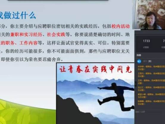 在活动过程中,同学们都在积极与老师互动,对老师的直播内容和方法都很感兴趣。此次网络直播员工就业创业指导讲座圆满结束,希望各位威廉体育williamhill的学子在未来都能获得自己满意的工作,也感谢主讲人杨煦怡的演讲,让同学们对求职之路更加有目标以及充满信心。