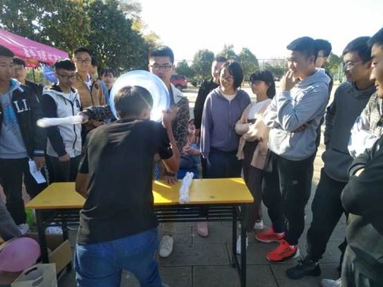 下午2点,决赛在楠苑操场篮球馆对面拉开序幕。决赛共有四轮,第一轮你画我猜,同学们认真的猜出歌名。第二轮同学们根据工作人员指定的动作完成游戏任务,同学们使出浑身解数,扭动脸颊,使食物滑到嘴里,用时最少的队伍胜出。第三轮同学们站在指压板完成规定动作,他们忍痛在指压板上跳跃、奔跑,努力完成游戏。第四轮互锤剪刀石头布,通过剪刀石头布来获得不同的道具从而拿分,同学们认真思考着自己岀什么,希望能够战胜对方。