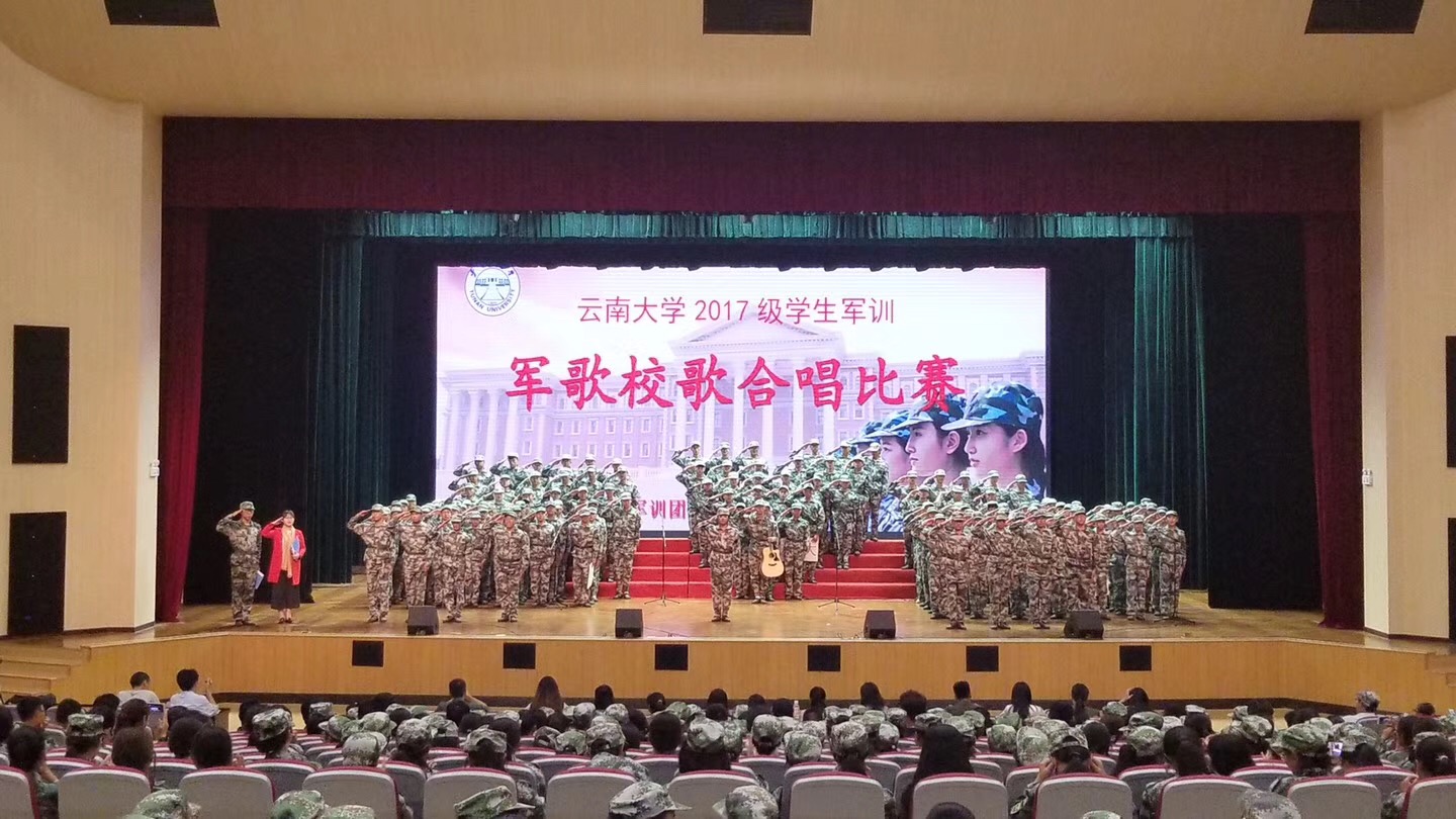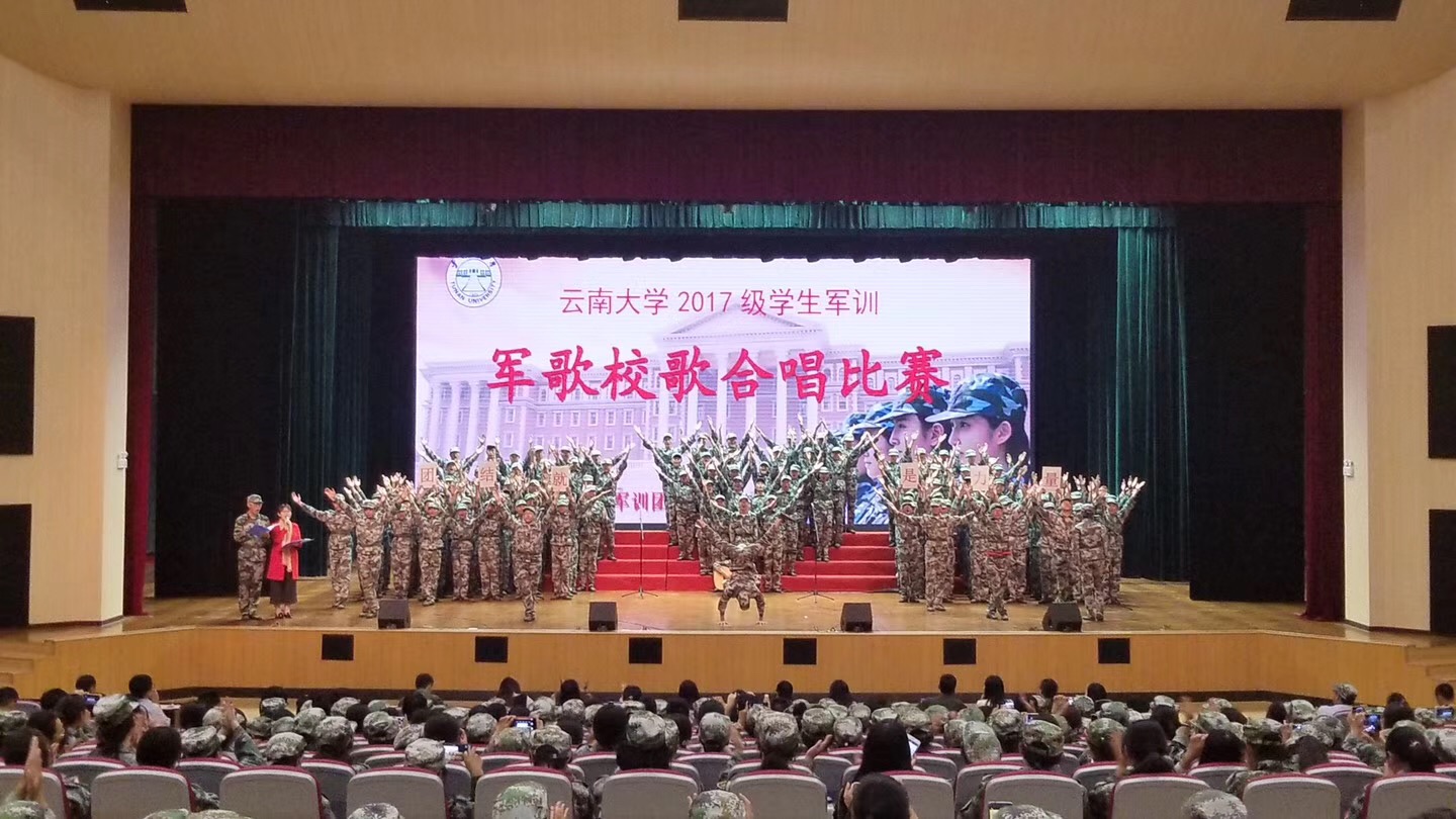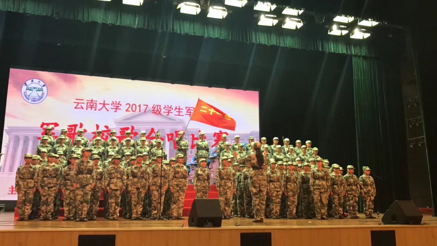 在比赛中公司新生连队精神饱满、斗志高昂,用他们整齐的列队、飒爽的军姿、嘹亮的歌声接受着来自教官、老师和同学们的掌声。威廉体育williamhill是第二位出场,“团结就是力量,团结就是力量,这力量是铁,这力量是钢„„”他们的歌声随着伴奏显得格外的铿锵有力、富有激情。每一个字都是力量的象征,每一个音符都是生命的跳动,一首《团结就是力量》唱出了同学们在军训这段友情岁月中团结一心,手挽着手心连着心一起走过的艰难与困苦,同学们深深的明白只有团结才会拥有巨大的力量,才会披荆斩棘乘风破浪。校歌响起,我被深深地震撼,“太华巍巍,拔海千寻;滇池淼淼,万山为襟。”唱出了威廉体育williamhill历史悠久,风景秀丽,登高远眺,巍巍西山,茫茫滇池,尽收眼底。“努力求新,以作我民;努力求真,文明允臻。”唱出云大学子为使文明完善,为了振兴中华大地,刻苦学习新知识,发奋图强,成为中华民族优秀的人才,追求科学真理,达到世界先进国家的科学水平,为云大,为祖国发光发热。