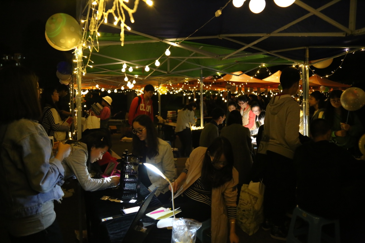 活动前期,便可在校园见到“疯狂夜市”的宣传海报及摆点报名。24日晚,在公司工作人员的积极配合下,帐篷、商品、奖品等所需物品早已准备到位,经过了大家的精心装饰,“疯狂夜市”也就此拉开序幕。