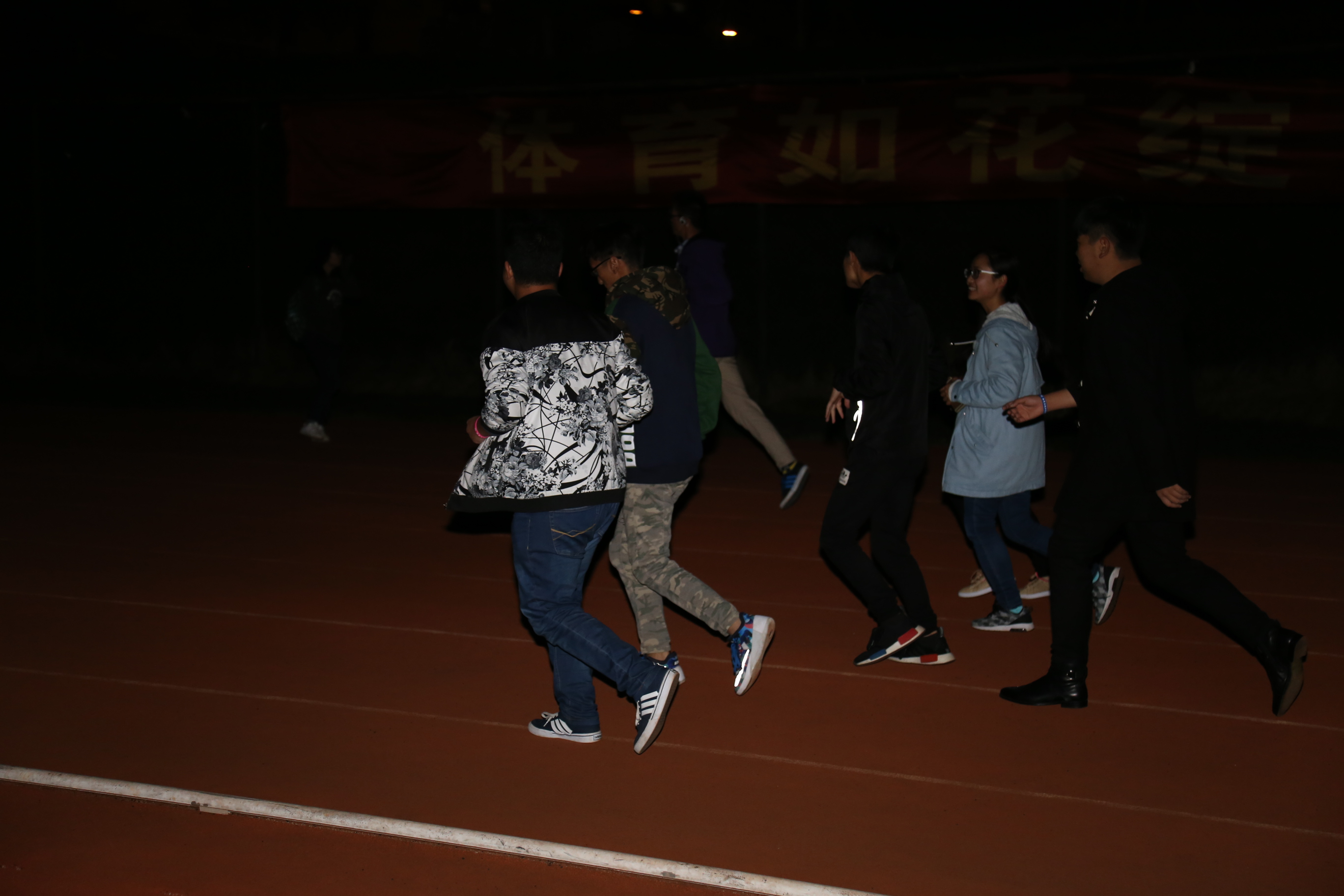 待所有准备工作就绪后,夜跑活动便正式开始了。一开始大家都精力充沛互不相让,一段时间之后便有人因体力的消耗而放慢速度。但仍不乏有身体素质较好的同学依旧精力充沛,继续前进。此时,为了能够让大家都继续参与进来,很多同学便自发的带领疲惫的同学共同向前,坚持将此次夜跑进行到底。