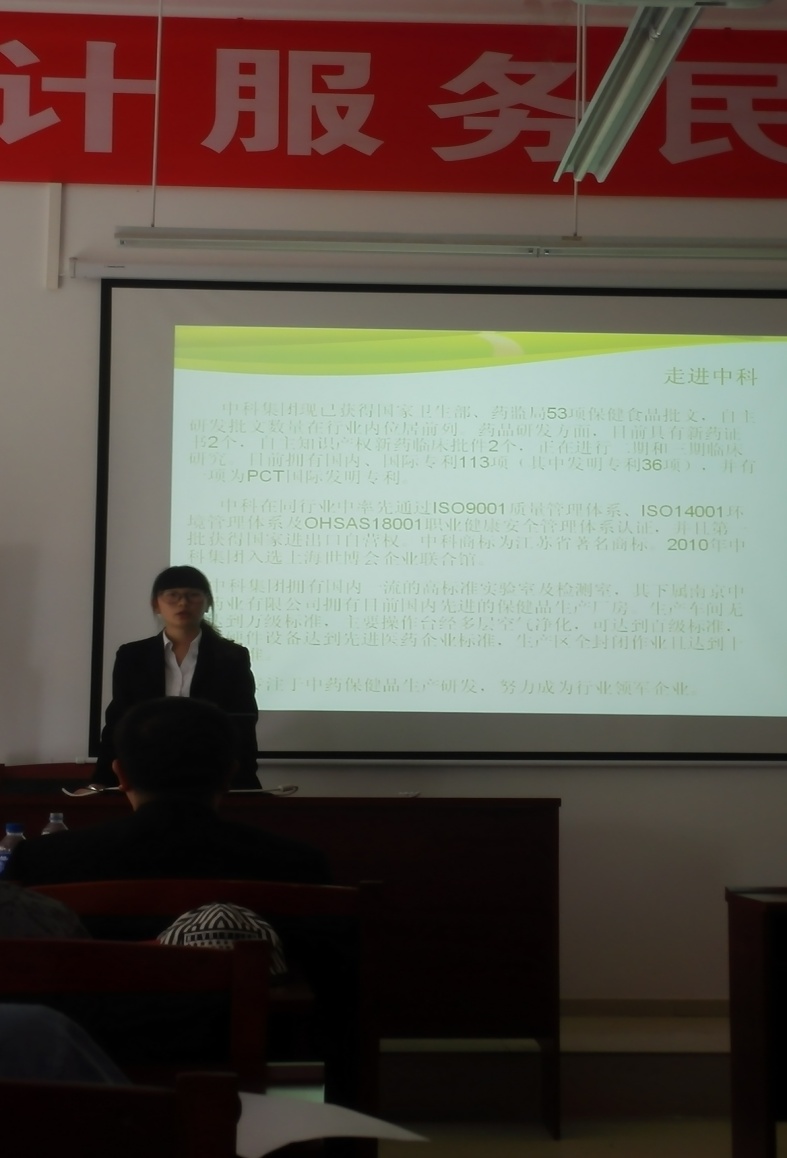 杨老师给送给同学们六个字“理想、行动、坚持”,希望毕业之后能够放飞梦想,自由翱翔。最后杨老师给同学们介绍了四个工作,两家企业对自己企业的文化、所需人才等方面进行了10分钟演讲。本次讲座圆满结束。