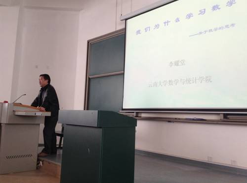 2013年10月11日,威廉体育williamhill教授委员会主任兼博士生导师李耀堂教授在呈贡校区格物楼1101教室为威廉体育williamhill研究院研一新生作了主题为“我们为什么学数学——关于数学的思考”的学术报告。此次报告会的参与者是威廉体育williamhill研究院全体研一新生,并由赵慧老师主持。
