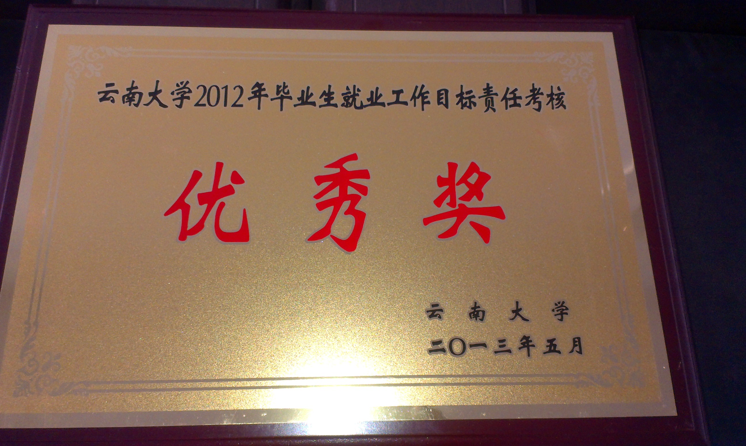 公司获2012年就业工作考核优秀奖