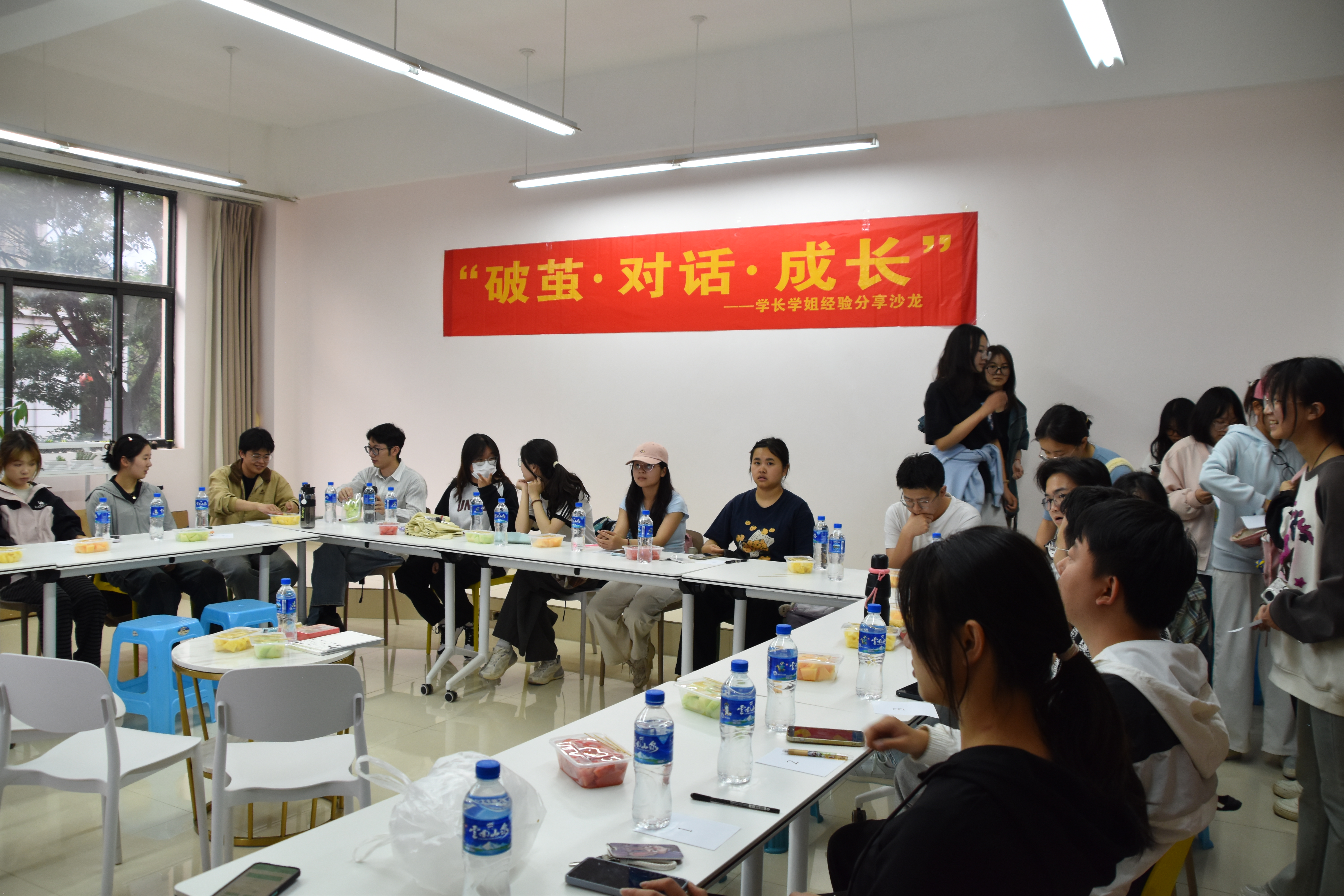 4月24日晚,公司邀请到赵达丹、杨皓然、罗丽兰三位学姐以“破茧·对话·成长”为主题,以考研、考公及老员工涯规划为导向,通过经验分享、互动游戏与深度对话的形式,为25名学弟学妹搭建了一个开放、温暖的交流平台,帮助大家明晰前路、突破迷茫。