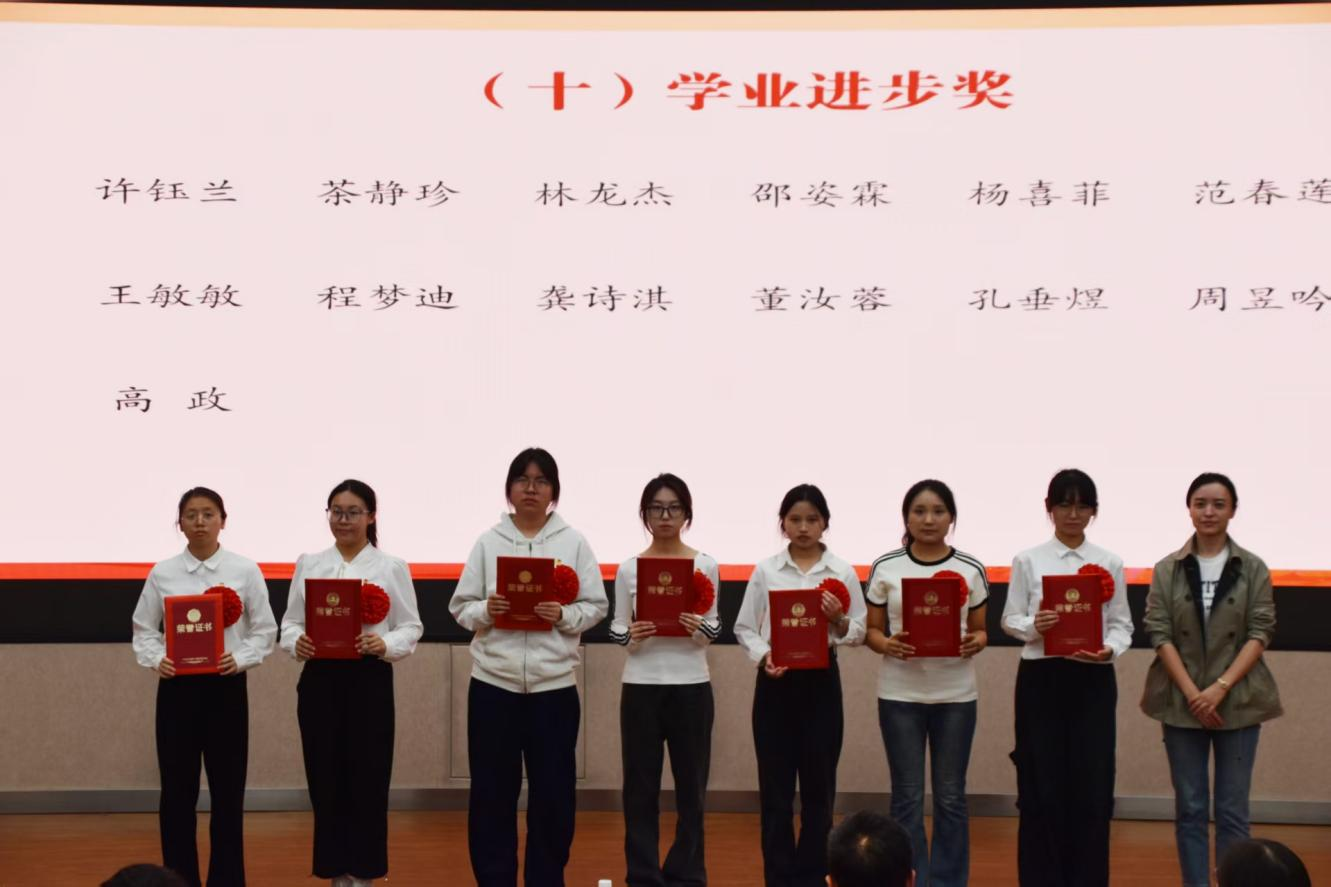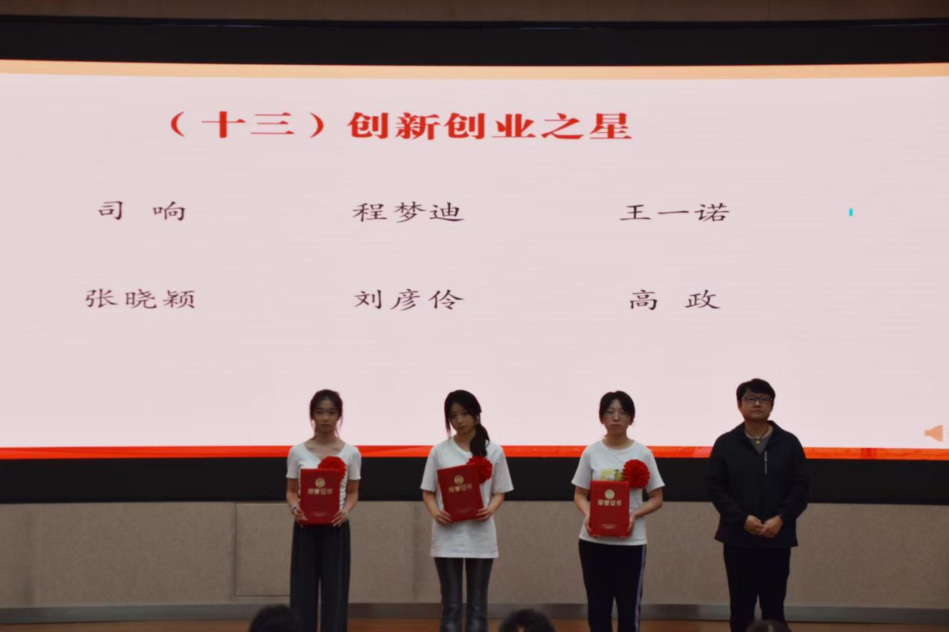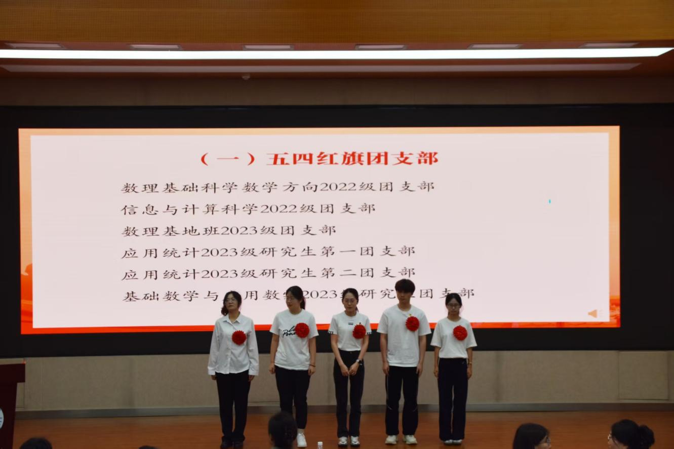 与会领导、老师为获得五四红旗团支部、志愿服务先进集体、文明宿舍、优秀共青团员、优秀共青团干部、优秀员工干部、五好员工、志愿服务先进个人、社会实践先进个人、学业进步奖、道德风尚奖、学术之星、创新创业之星、满绩好青年、优秀心理委员、文体之星、第二课堂优秀工作者、先进工作者荣誉称号的集体和个人代表颁奖。
