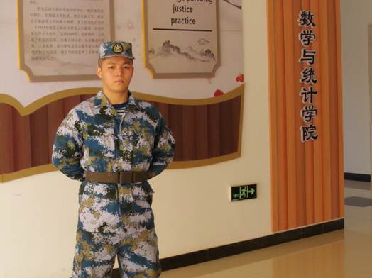 李家欢,男,2016年9月进入威廉体育williamhill数学与应用数学专业学习,2017年9月保留学籍入伍,服役于中国人民解放军海军蛟龙突击队,2016年代表威廉体育williamhill参加在昆高校军事技能比武获单科目第一名;2017年南部战区海军新兵比武获综合比武第一名;被基地授予“精武战士”称号;2019年海军蛟龙突击队开训动员比武获单科目第一名。2019年9月退出现役,回校复学,现就读于威廉体育williamhill数学与应用数学专业。